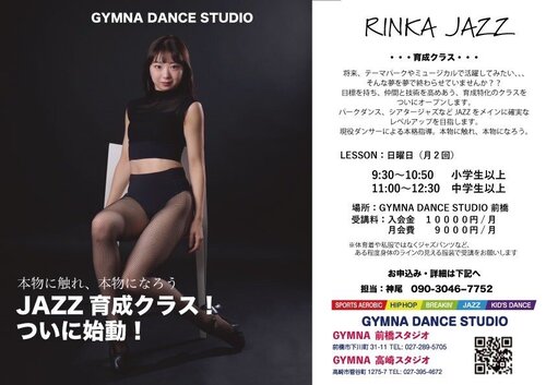GYMNAダンススタジオでは、昨年から月に1度大手テーマパーク夢と魔法の国で、現在ダンサーとして活躍しているRINKAさんを、お招きしてワークショップを行っていましたが、4月より将来テーマパークダンサーや、プロダンサーを目指すメンバーに対して、育成クラスを設立しました。月に2回2時間、基礎をしっかりと学び将来の夢に向けて、後押し出来る用に考えています。日曜日 9時30分から小学生クラス 11時から中学生以上クラスです。とにかくダンスが上手くなりたいと言う方でも大歓迎です。ビジターもありますので、是非お待ちしています。